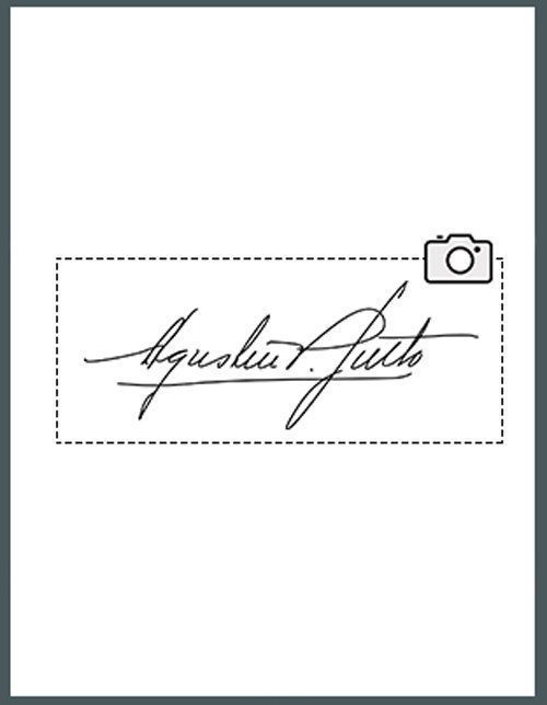 Sul un foglio bianco scrivi la tua firma e fotografa come da esempio.
